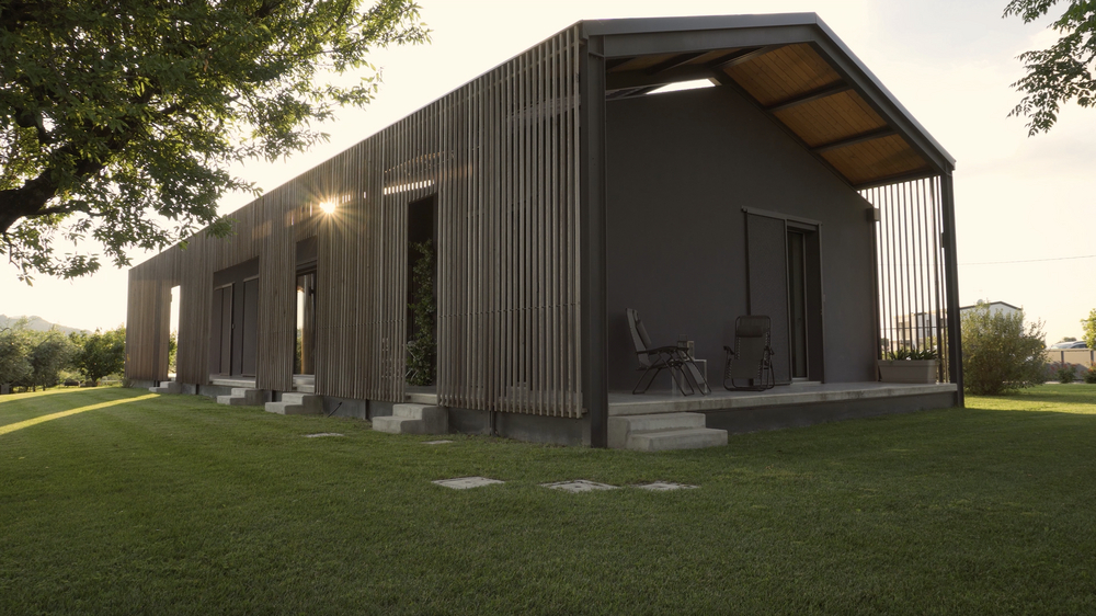 - I det charmiga landsbygdsområdet Cesena, vid foten av Apenninerna, står en bostad som är utformad enligt Passivhaus-standarden, ett ideal för hållbar arkitektur. Denna byggnad, inspirerad av de typiska bondgårdarna i området, kombinerar tradition och innovation för att passa perfekt in i det omgivande naturlandskapet. Huset har en prismatisk form omgiven av ett solskydd i trä, som reglerar insläppet av naturligt ljus och skapar fascinerande ljus- och skuggspel, vilket blir ett visuellt distinkt inslag i byggnaden.