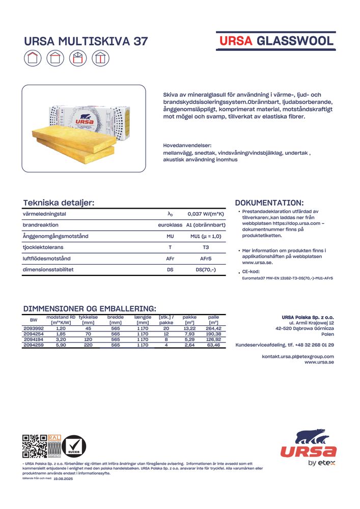 URSA erbjuder all sin dokumentation för nedladdning för att stödja dig i alla dina byggprojekt från specifikation till implementering.